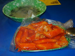 席についてとりあえず、「トッポギ ジュセヨ.」(トッポギ下さい。)「〜ジュセヨ.」